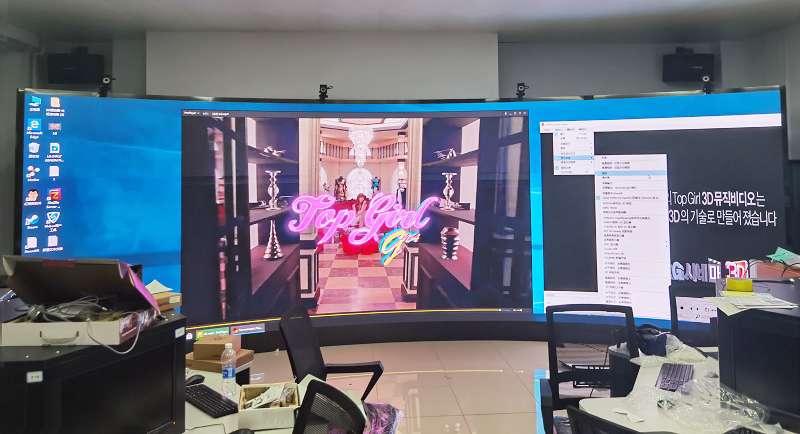 屏体为内弧90度,整体的安装难度较大。